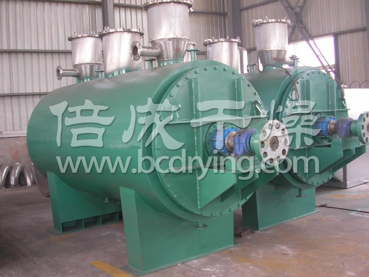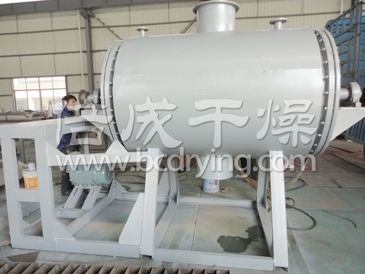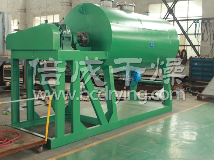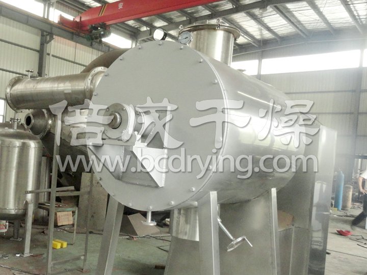 本機是一種新穎臥式間歇式真空干燥設備,濕物料經(jīng)傳導蒸發(fā),帶有刮板攪拌器不斷清除熱面上的物料,并在容器內推移形成循環(huán)流,水份蒸發(fā)后由真空泵抽出。