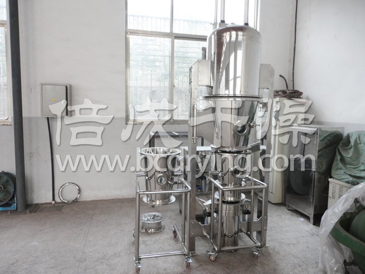 產(chǎn)品概述:FL、FG系列立式沸騰制粒干燥機的原理是物料粉末粒子,在原料容器(流化床)中呈環(huán)形流化狀態(tài),受到經(jīng)過(guò)凈化后的加熱空氣預熱和混合,將粘合劑溶液霧化噴入,使若干粒子聚集成含有粘合劑的團粒,由于熱空氣對物料的不斷干燥,使團粒中水分蒸發(fā),粘合劑凝固,此過(guò)程不斷重復進(jìn)行,形成理想的、均勻的多微孔球狀顆粒。