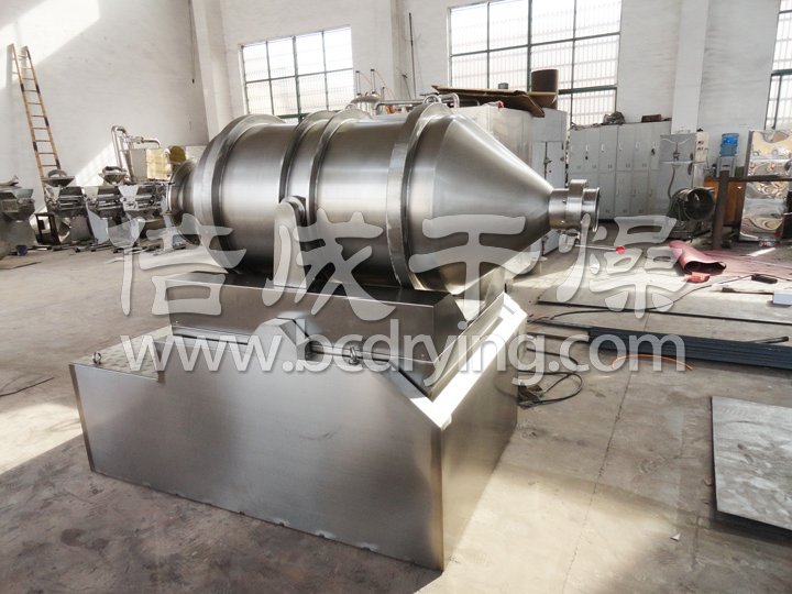 EYH二維混料機的轉筒可同時(shí)進(jìn)行二個(gè)運動(dòng),一個(gè)為轉筒的轉動(dòng),另一個(gè)為轉筒隨擺動(dòng)架的擺動(dòng)。被混合物料在轉筒內隨轉筒轉動(dòng)、翻轉、混合的同時(shí),又隨轉筒的擺動(dòng)而發(fā)生左右來(lái)回的摻混運動(dòng),在這兩個(gè)運動(dòng)的共同作用下,物料在短時(shí)間內得到充分的混合。EYH二維混料機適合所有粉、粒狀物料的混合。